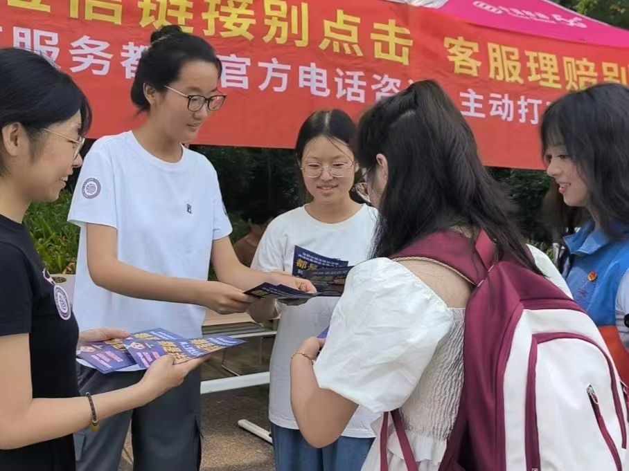 在引导新生走进迎新区的过程中,志愿者积极配合校(院)的反诈宣传教育,向新生介绍反电诈、防诈骗等相关知识和法律法规,切实提高同学们的反诈意识,保护好自己的“钱袋子”。