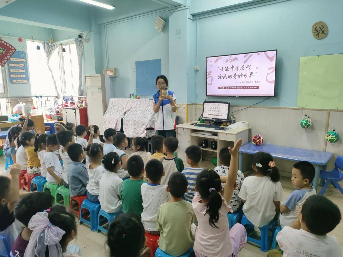 为深入学习宣传习近平新时代中国特色社会主义思想,学习贯彻党的二十大精神,深化“强国复兴有我”群众性主题宣传教育,推动中华优秀传统文化的传承与发展,近日,护理学院南丁格尔志愿服务队走进泰安市卓雅·奥林匹克幼儿园开展“中国历代绘画大系”志愿宣讲活动。