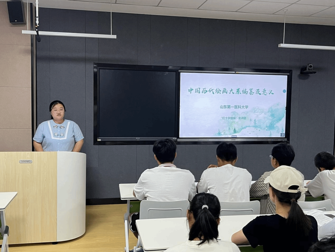 为深入学习贯彻习近平文化思想,落实全国宣传思想文化工作会议精神,9月25日,护理学院“红十字姐妹”宣讲团进入课堂,为护理学院2024级同学们讲述“中国历代绘画大系”的编纂过程与重要意义,带领大家感受中华传统绘画的独特韵味与深厚底蕴。