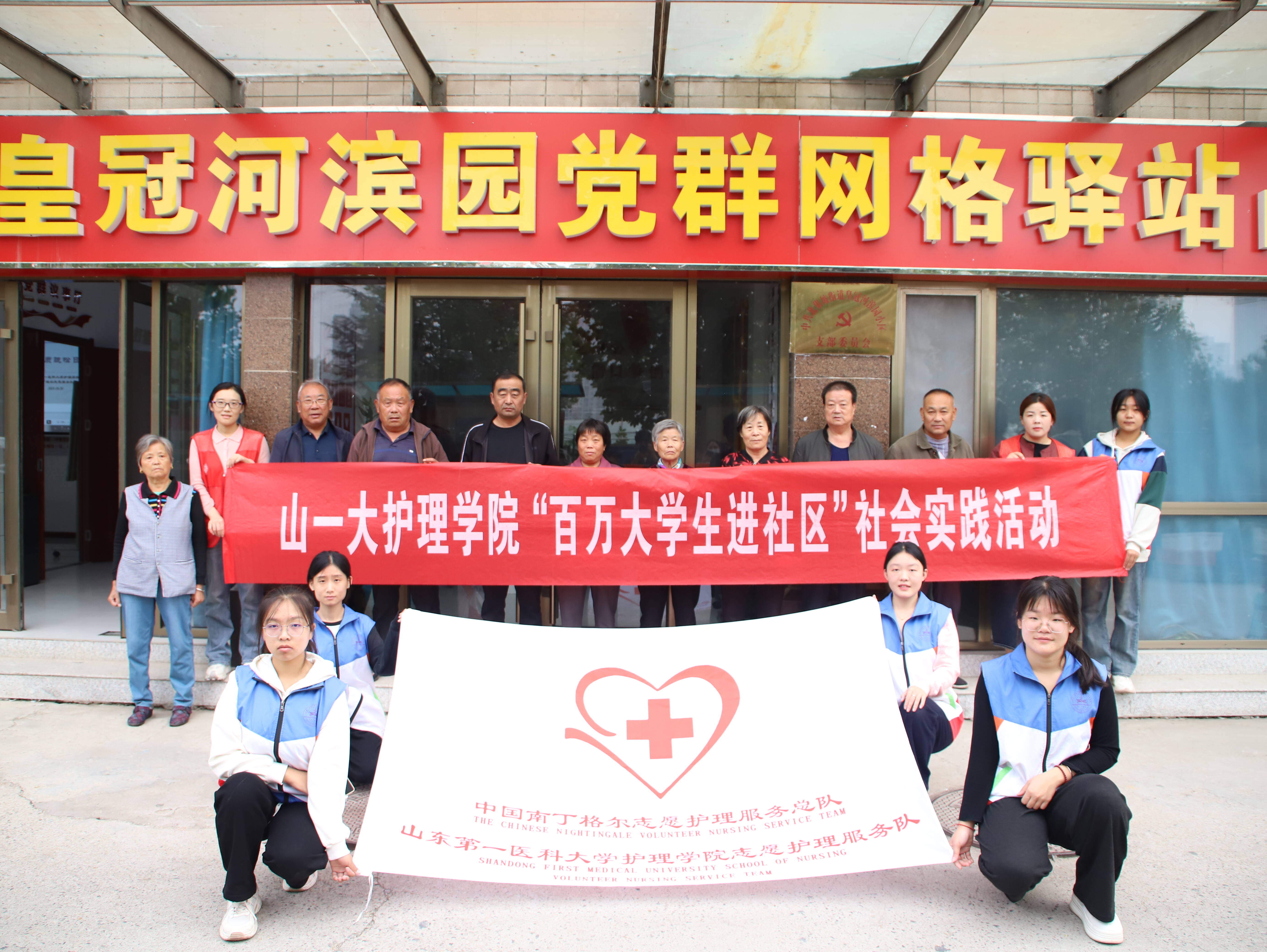 为进一步落实团省委《关于开展“百万大学生进社区”社会实践的工作方案》,彰显青春价值与担当,近日,护理学院南丁格尔志愿服务队走进泰安市皇冠河滨社区开展“百万大学生进社区”社会实践活动。