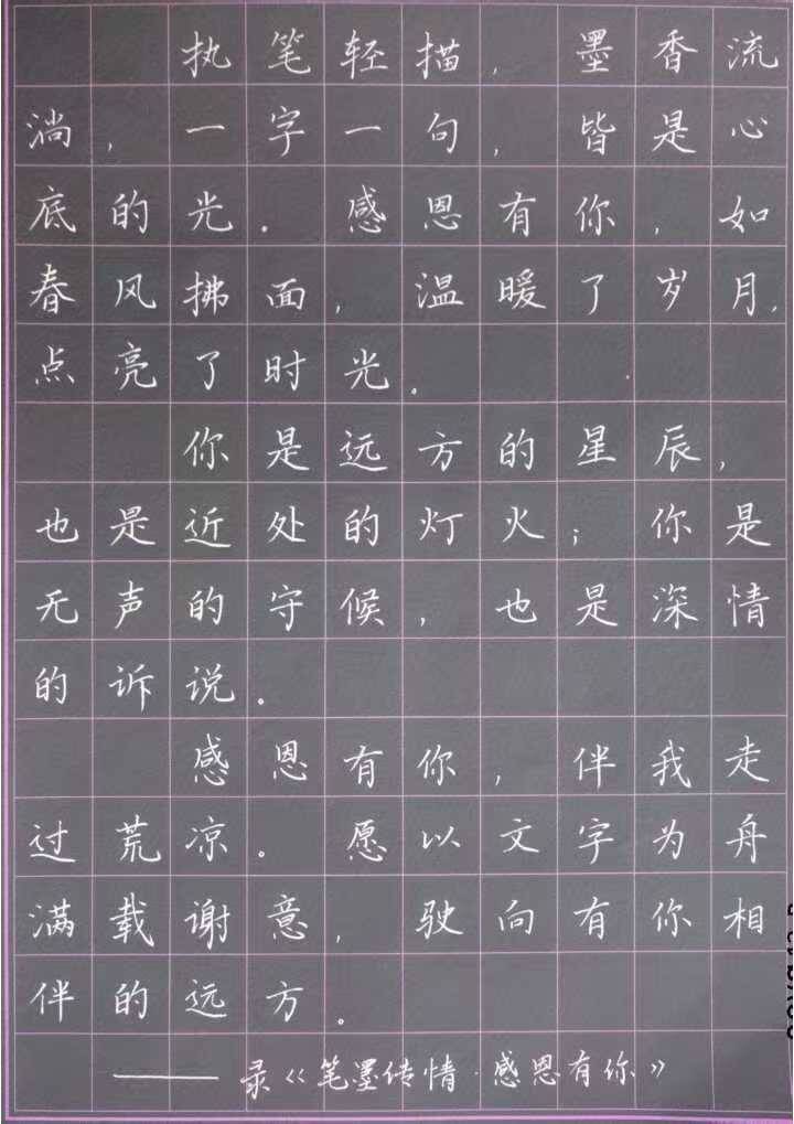 为深化感恩教育内涵,营造崇德向善的校园文化氛围,近日,护理学院举办“笔墨传情,感恩有你”线上书法作品征集活动,以传统书法为载体,引导学生在挥毫泼墨间抒发感恩之情,传递温暖力量。