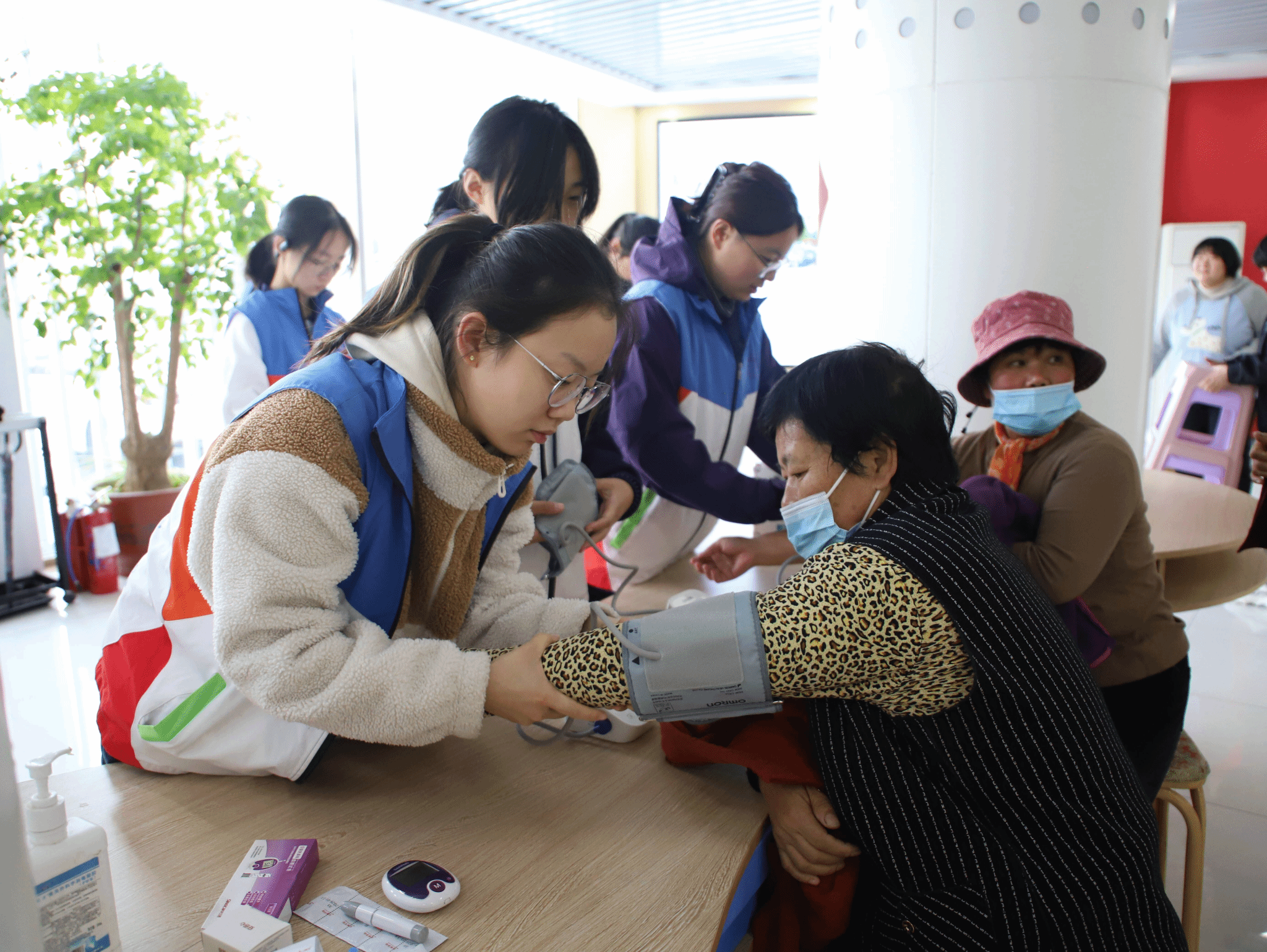 近日,护理学院南丁格尔志愿服务队走进泰安市凤凰社区开展“百万大学生进社区”社会实践活动,为老年人普及心脑血管疾病的防治知识。