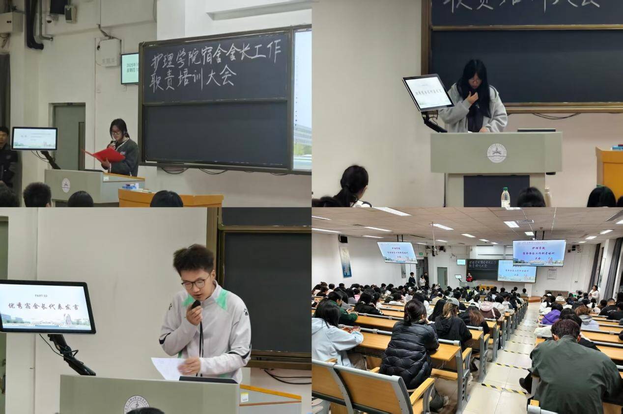 为进一步明确宿舍舍长工作职责,提升宿舍管理效能,营造安全文明和谐的住宿环境,10月23日晚,护理学院开展宿舍长培训,全体辅导员老师和学院全体宿舍舍长参加培训。