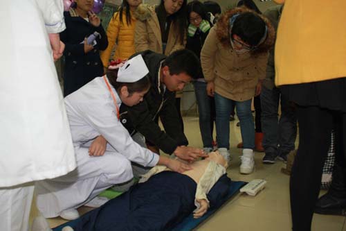 为普及实用规范的急救知识与技能,加强同学们的创伤自救能力,护理学院南丁格尔志愿服务队于2014年11月14日至16日晚,在图书信息楼1-01举行了第三届“玉兰杯”急救知识普及活动,外国语学院、化工学院等九个非医学专业学院,约四百人参加了本次活动。