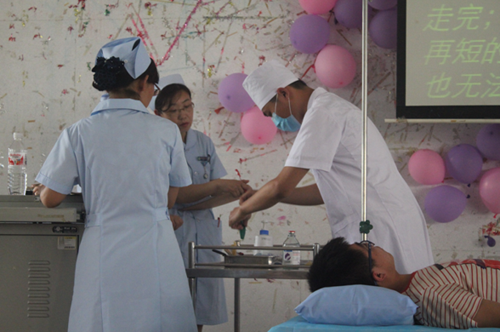 本次竞赛分设“无菌技术”、“静脉输液”和“心肺复苏”三个单项,共有39名学生参加比赛,参赛选手身着整洁的护士服,以稳健娴熟的操作赢得了观众的阵阵掌声,整个比赛过程紧张有序,竞争激烈,最后参加第五届全国高等医学院校大学生临床技能竞赛的选手们为师生们带来了临床综合急救技能展示,对护理专业学生起到了很好的借鉴学习作用。