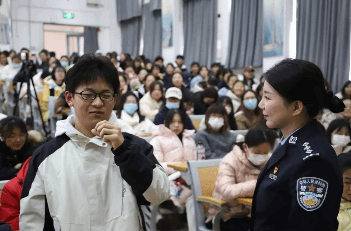 崔庆娜围绕“电信诈骗含义”“电信网络诈骗常见形式”“勿成两卡犯罪工具人”“反诈宝典”四个部分进行深入而细致的讲解。通过聆听讲解,同学们对诈骗行为有了更深入的认知,也更加明白了防范诈骗的重要性。现场互动环节,崔庆娜解答了学生的疑惑,同时她深入剖析了易受骗人群的心理特征,揭示了诈骗者的伎俩和手段,帮助学生提高识别和防范诈骗行为的能力。