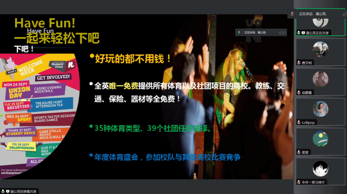 张元杰从北安普顿大学的学术氛围、专业设置以及留学生活等方面展开了详细的介绍,同学们对英国的教育体系和文化有了初步的了解。张元杰简要说明了到北安普顿大学留学的优势,以及学校对留学生培养的优待措施,并表示留学读研对提升学生的自身实力和拓宽职业发展前景有很大的帮助。