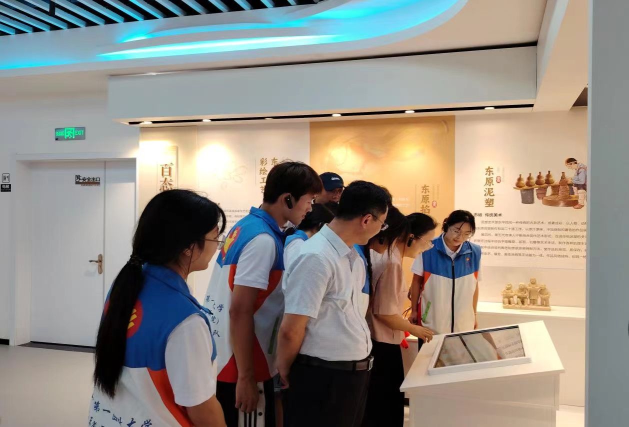 传习中心作为非遗文化的传播基地,集非遗展示、体验、传习等功能为一体,为大众提供了一个深入了解非遗知识、感受非遗魅力的平台,有效推动大众对非遗项目的传承与发展。在讲解员的引导下,实践团切身感受东平丰富的非物质文化遗产资源,如掐丝粉彩、鱼鹰捕鱼、民间艺术剪纸、九品贡煎饼制作技艺等,还参与了多种互动体验活动。在参观学习过程中,师生们更加直观地感受到东平县非遗文化的魅力,同时也深刻意识到非遗项目不仅是东平文化的瑰宝,更是中华民族宝贵的文化基因。
