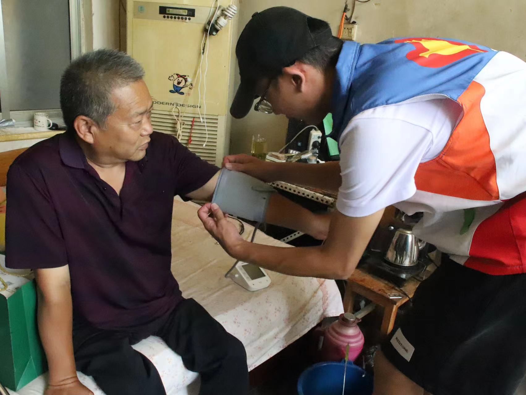 到达常仲口村后,队员们迅速分组进行入户慰问。为困难老人提供健康义诊,为他们测量血压和血糖,并针对老人的情况向他们提出健康指导意见。此外,大家还为老人送去毛巾、牙刷、牛奶等爱心物资。