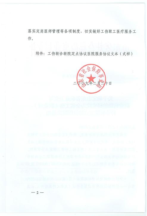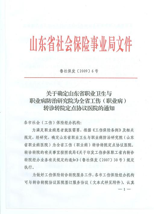 日前,山东省社会保险事业局发布第[2009]6号文件,确定山东省职业卫生与职业病防治研究院为全省工伤(职业病)转诊转院定点协议医院。