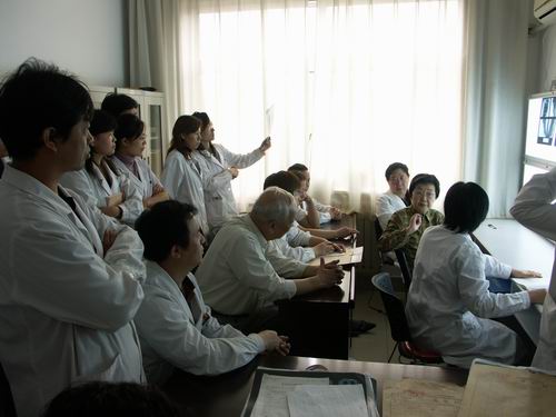 为进一步规范我院职业病诊断程序,考察我院尘肺病诊断医师标准掌握情况,进一步提高我院尘肺病技术诊断水平,2006年10月20日我们邀请中国疾病控制中心职业卫生与中毒控制所著名尘肺病专家张秀娟教授来我院指导尘肺病诊断工作,并参加了我院的病例集体会诊。张教授对我院开展尘肺阅片“个评”加“盲评”大加赞赏,同时结合自己丰富的经验,对我们诊断过程中存在的问题也进行了详细的点评。整个会诊过程学术讨论非常热烈,大家感到受益非浅。