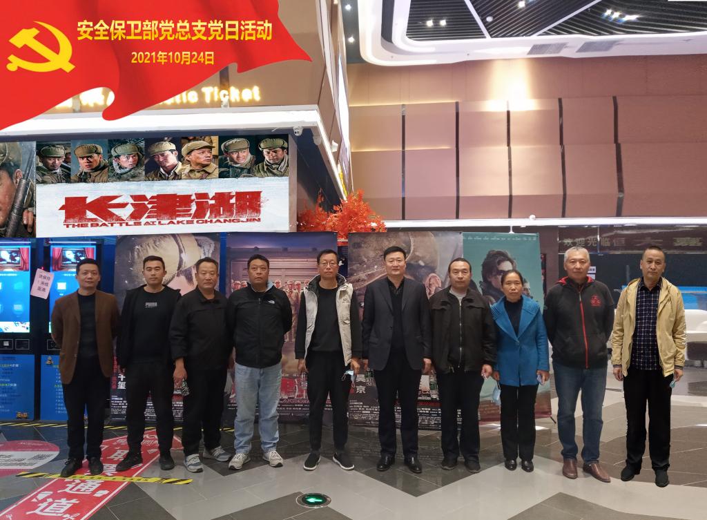 开展党史学习教育以来,安全保卫部党总支积极响应上级党委号召,采取多种形式加强党史理论学习,并在日常工作中不断实践、再学习。为进一步推动党史学习教育向纵深发展,激发广大党员学习的热情,10月24日,安全保卫部党总支组织全体党员在不同影院观看了红色电影《长津湖》。