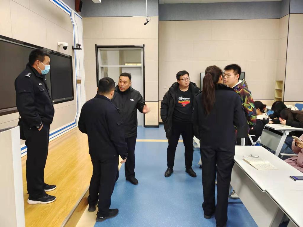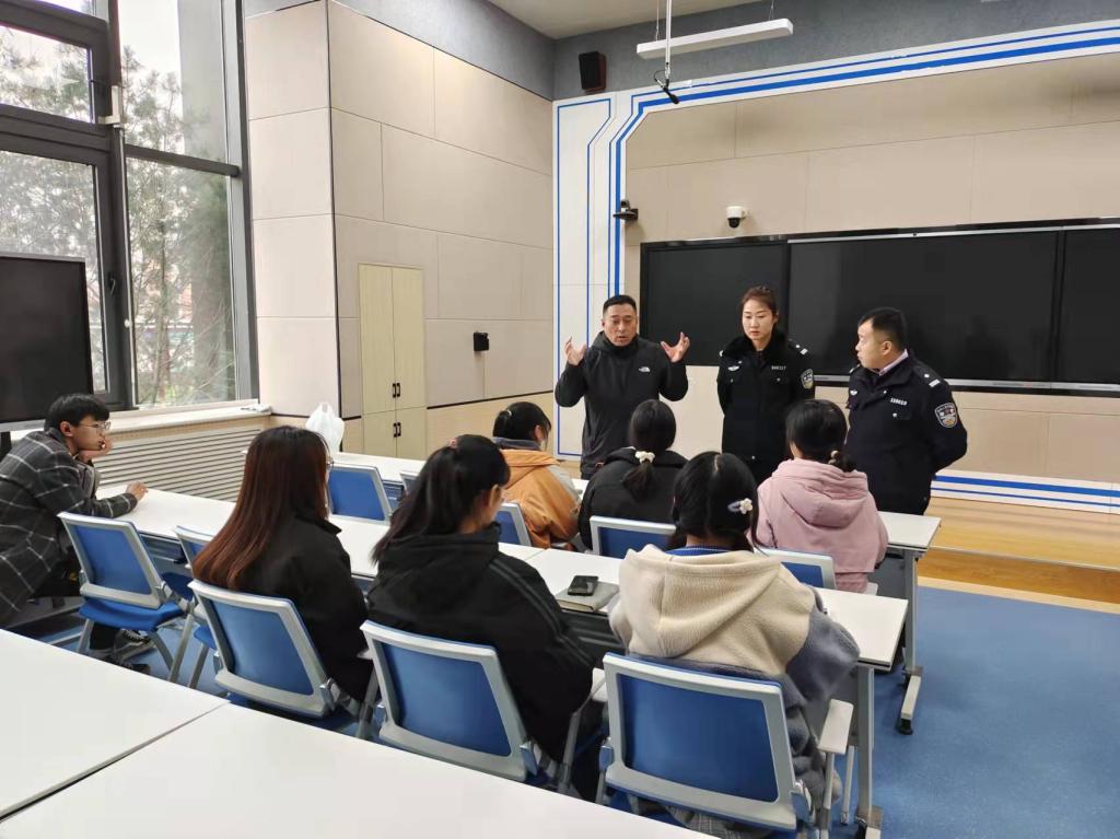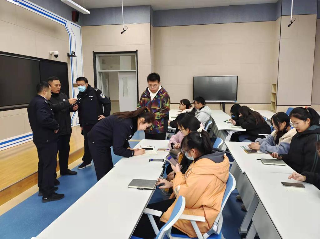 20211216日,槐荫区公安分局刑警反诈中队教导员张志强、政治处干部人事科长王婷婷、兴福派出所副所长孙广军、兴福派出所警长张汉豹等一行四人来校,给校(院)主校区反诈协会志愿者们进行“国家反诈中心”APP的安装、注册、推广等相关知识进行讲解辅导。