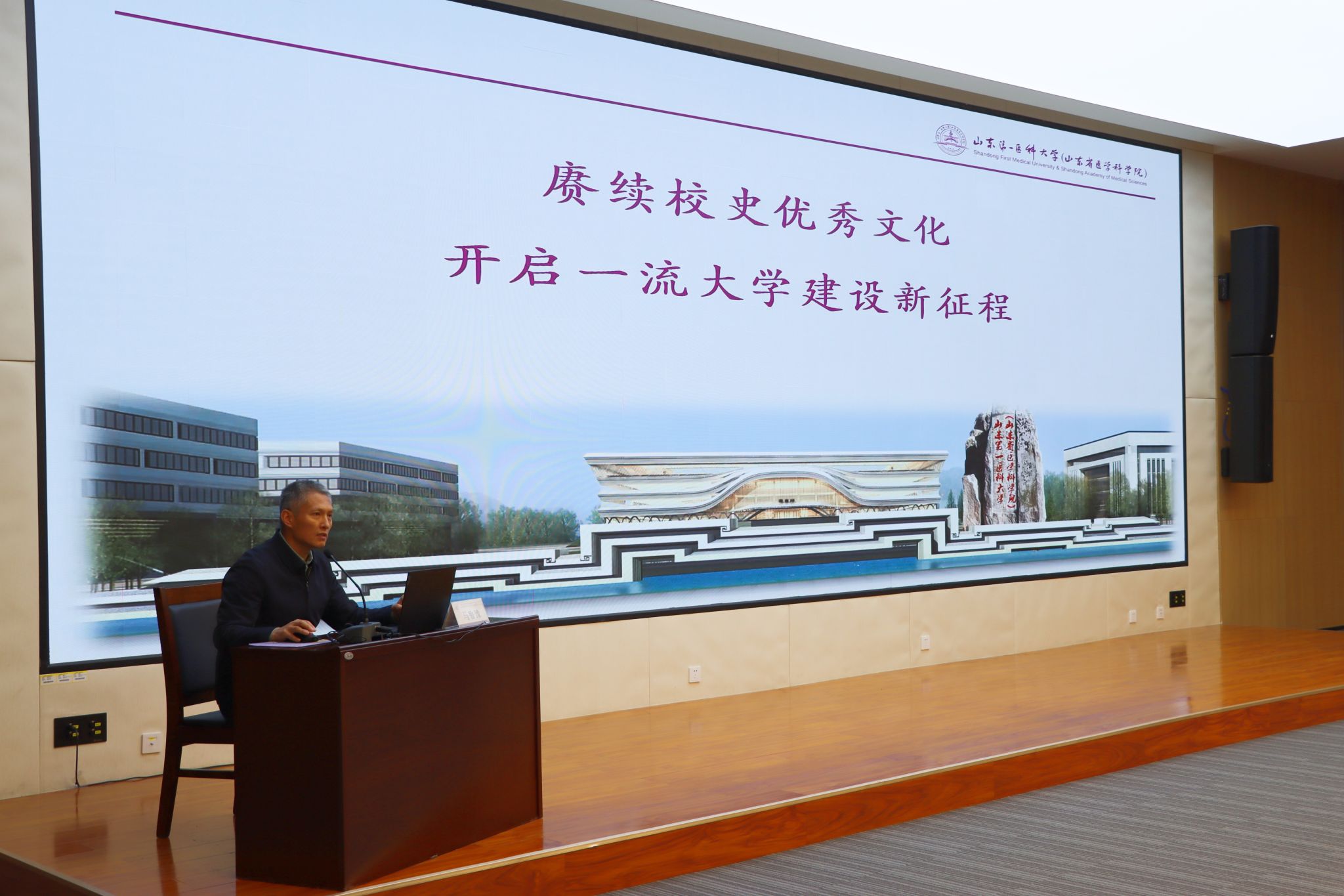 马鲁豫在讲课中指出,校史是高校立德树人最真切、最生动的“教科书”,我们回望校史,是为了知史爱校、不忘初心、奋发图强、再赴新程,他勉励师生要努力做“自强不息”山一大精神的忠实传承者、积极践行者和大力弘扬者。