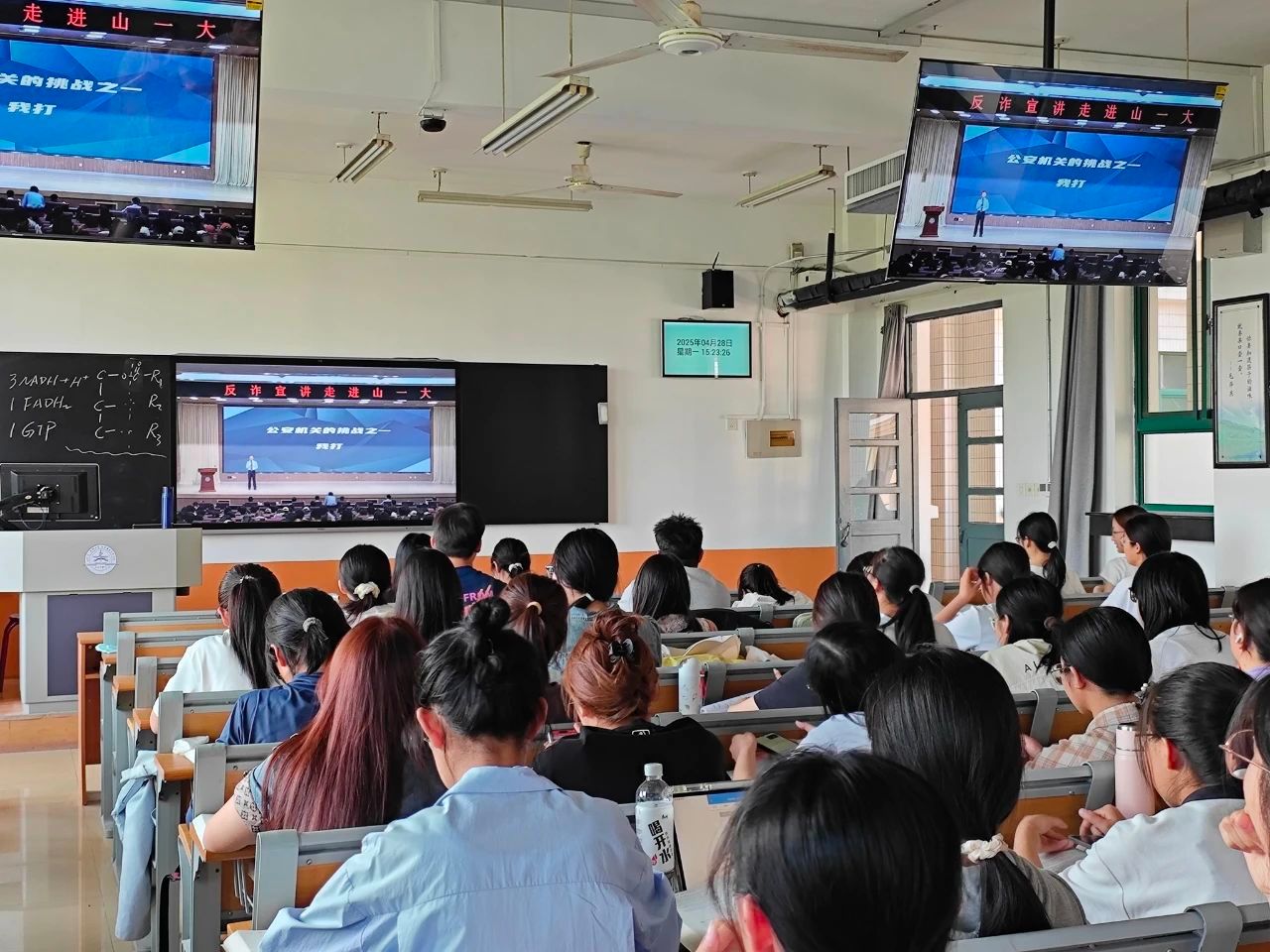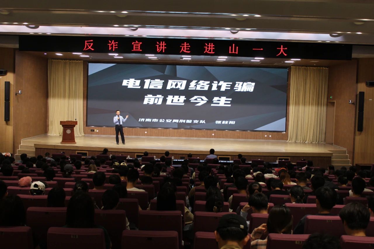 省公安厅刑事侦查总队二级警长胡南、实习民警荀晓东,校(院)宣传部、学生工作部、安全保卫部负责人、济南校区各学院副书记、辅导员,济南校区和泰安校区线下、线上共计约4000人参加活动。