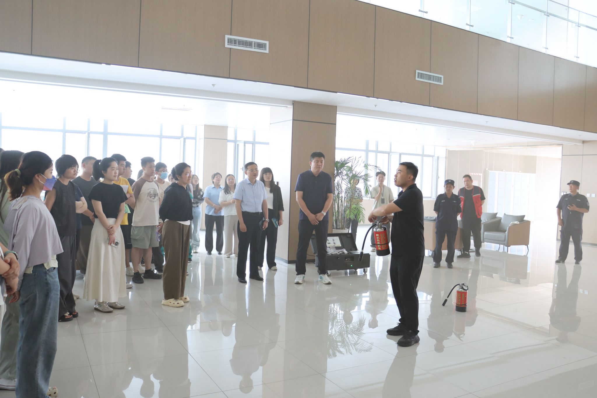 图书馆是校(院)消防安全重点部门,安全保卫部针对图书馆易燃物集中、人员疏散难度大等特点,结合实际案例,深入浅出地讲解了火灾预防、初期火灾扑救、疏散逃生等知识,并现场演示了灭火器、消火栓等消防设施的正确使用方法。同时,组织参训人员进行模拟火灾疏散演练,确保工作人员在面对突发火情时能够迅速、有序地引导人员撤离。