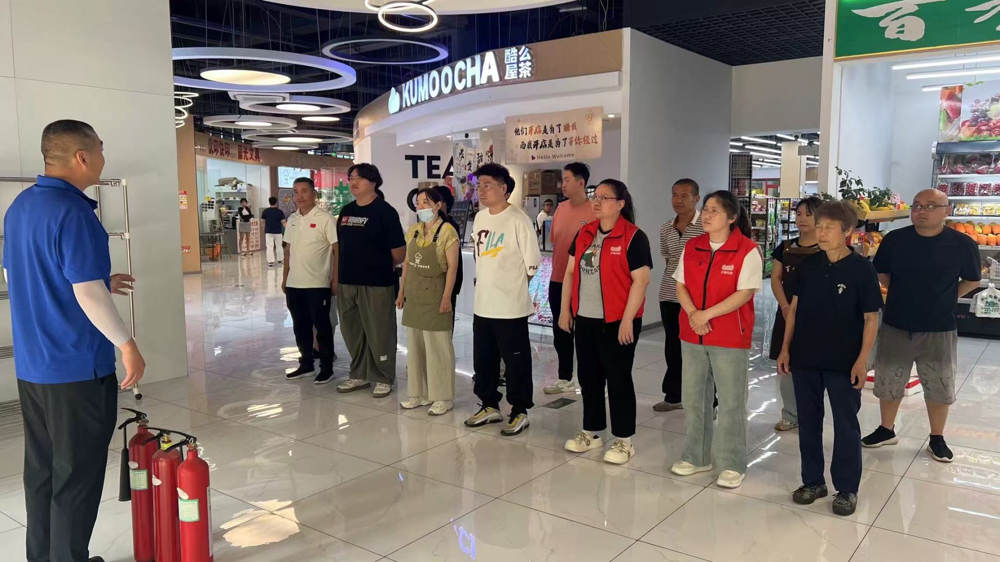 针对天猫超市人员流动频繁、易燃货物堆放多的特点,安全保卫部重点讲解了货物存储区域的防火规范和如何检查及维护电气设备,并组织天猫超市员工开展模拟火灾场景下的应急疏散演练,指导员工在火灾发生时如何快速引导人员有序撤离,以及如何使用消防设备进行自救和初期火灾扑救 。