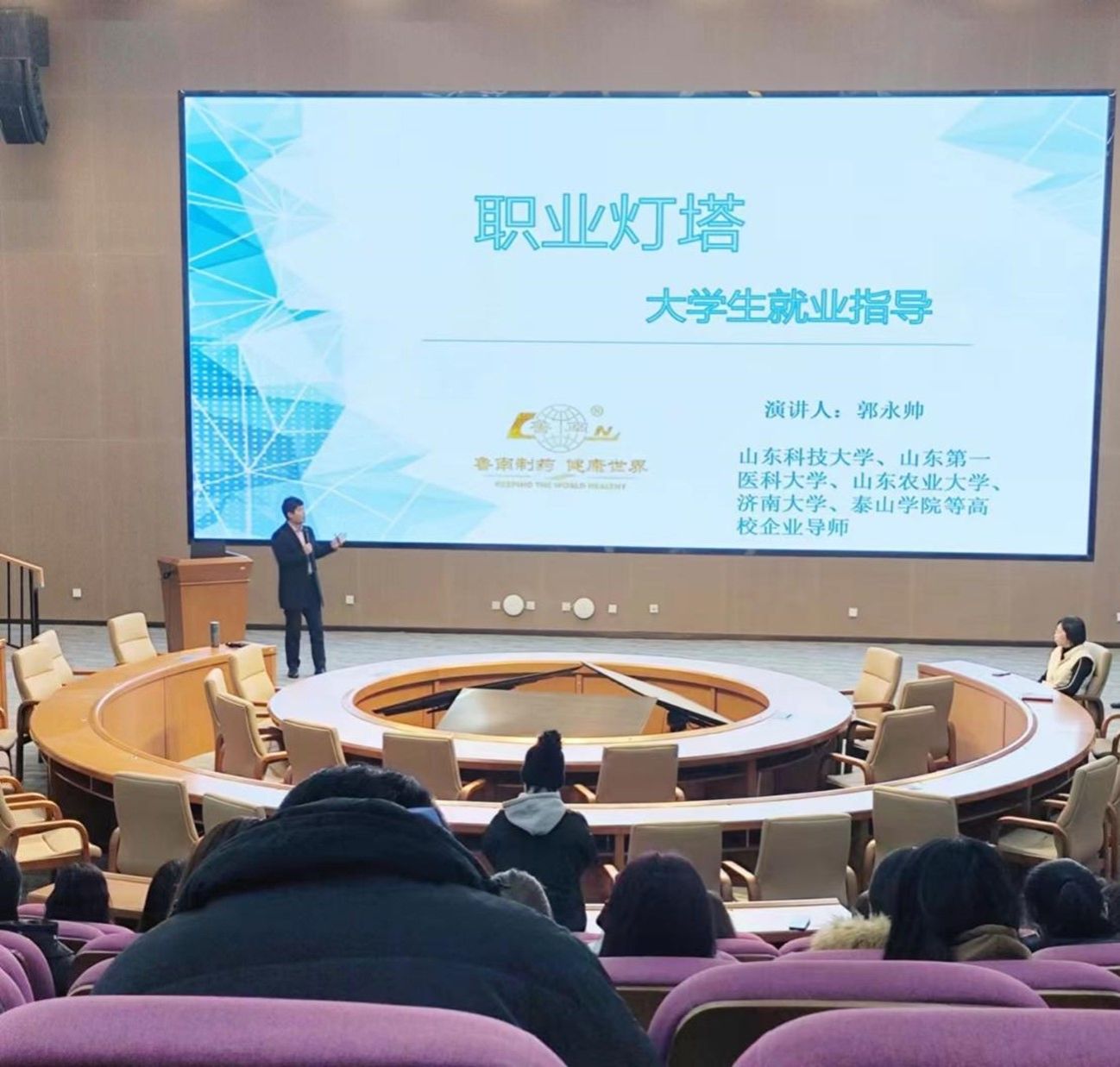 为切实增强大学生就业意识,进一步推进学院学生就业指导工作,1月12日上午,药学院(药物研究所)联合鲁南制药集团在药学楼学术报告厅举办了大学生就业指导活动,鲁南制药集团人力资源中心经理郭永帅、药学院(药物研究所)副院长周延萌及辅导员支运常和2021级全体学生参加此次活动。