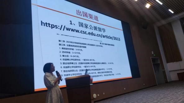 对外交流合作部王敬老师从专业角度,详细讲解国家现行出国(境)留学政策,学校相关奖励支持措施,推介重点出国(境)项目。