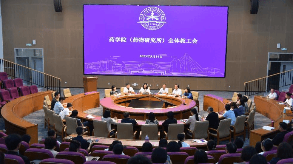 2023年9月14日,为迎接教育部本科教育教学审核评估,药学院(药物研究所)全体教工在药学楼学术报告厅召开会议,院(所)党委副书记、副院(所)长王海洋主持会议。