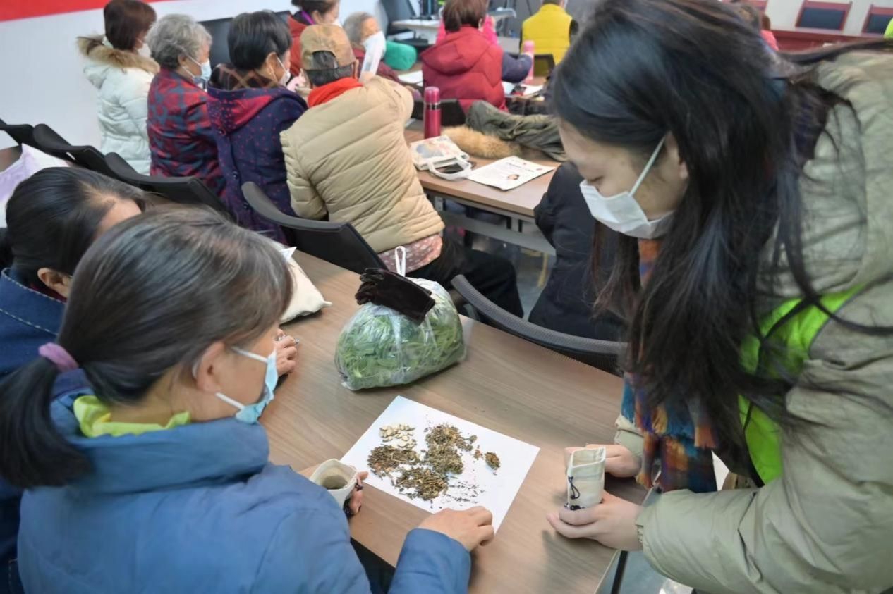活动最后,队员们为居民分发香囊袋与苍术、薄荷、艾叶等中草药材,在讲解各种中草药材的功效后,志愿者与居民们共同制作了具有提神醒脑、沁脾祛湿、芳香避秽、提高免疫力等功效的防流感香囊,为居民们的健康生活保驾护航。共制小小香囊,寄予点点温情,蕴含着传承千年的中医智慧的中药香囊,走出古籍,走进社区,走进生活,饱含着医者热忱,代表着队员们将健康带给广大群众的决心。