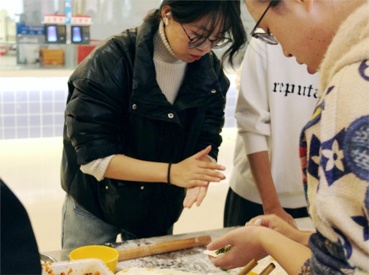 食堂的餐桌上摆满了包饺子所需的食材和工具,同学们热情高涨,聚集一堂,在食堂阿姨的指导下学习包饺子的技巧。学习后,同学们进行明确分工,有的负责揪面剂子,有的负责擀面皮,有的负责包饺子,大家各司其职,有条不紊,其乐融融好不热闹。在包饺子过程中,同学们展现出了各自的技巧理解,其中不少同学表现出了精湛的技艺,他们手法熟练,有些饺子形状独特,创意十足,有些饺子圆润可掬,精美可爱,饱含着同学们对幸福美好生活的期许。