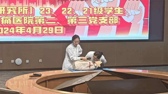 培训初始,第三支部党员代表王绚主任详细讲述了CABD心肺复苏、除颤仪操作流程以及电击治疗内容及病人心跳呼吸停止的表现,包含但不限于意识突然丧失、大动脉搏动消失、脸色苍白或转为紫绀等,便于师生们能及时精准判断患者症状,及时把握黄金抢救期。