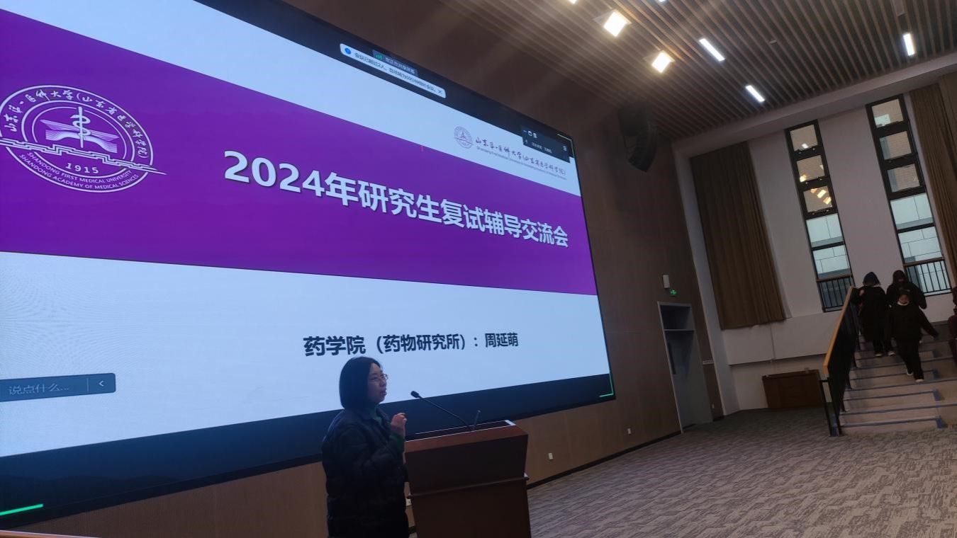 为助力考研学子的升学之路,聚焦解决复试与调剂过程中的问题,3月5日下午,药学院(药物研究所)于药学楼学术报告厅举办考研复试辅导交流会,药学院(药物研究所)副院长周延萌做专题报告。2024届毕业生线上+线下300余人参加会议,报告会由院(所)学工办主任罗树启主持,毕业班辅导员参加活动。