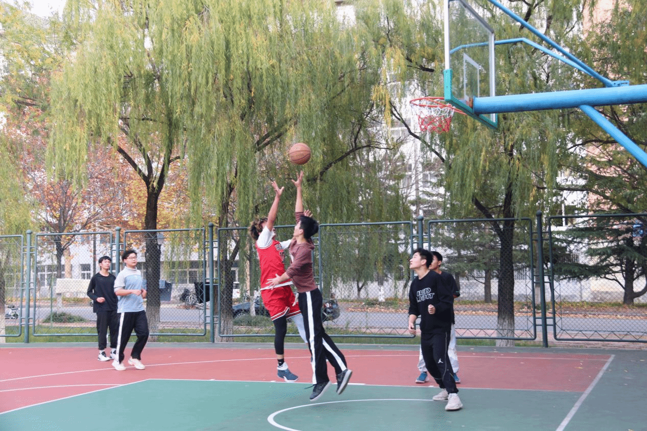 立冬刚至,时而凌冽的寒风却难挡同学们对比赛的高涨热情。随着史书记和宋书记的精彩开球,两场比赛同时开始,球员们瞬间激情澎湃,将热情的汗水挥洒在篮球场上。尽管冬风呼啸,球员们却毫不懈怠:防守眼神的坚决、进攻脚步的迅速、投球身姿的矫健,无一不彰显球员对篮球的热爱。