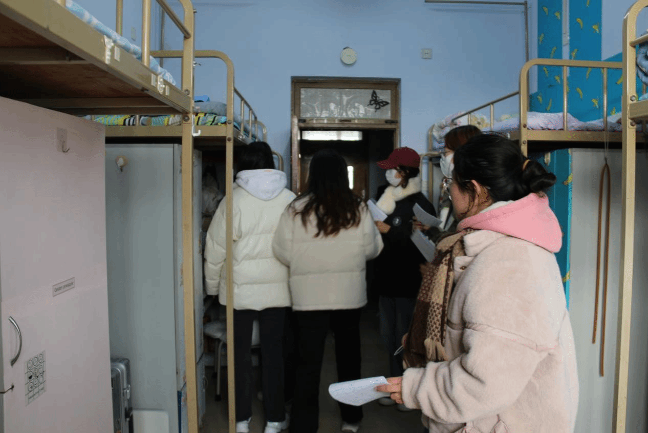评比进行时,评委团们坚持公平公正的原则,围绕宿舍卫生、床铺整洁、物品摆放、有无违规电器使用等方面,对参评宿舍进行综合评估及打分。在宿舍卫生方面,许多宿舍通风良好、空气清新,桌面及地面角落无灰尘,阳台规整无杂物,床铺也收拾的整齐利索。在宿舍美化方面,同学们在宿舍内增添了绿植、毛绒玩偶、海报、手办等点缀物,将自己的个性爱好一展无余,整个寝室布置温馨尔雅、格局简约大方,给评委们留下了极为深刻的印象。同时,针对评比过程中出现的一些问题,评委们也及时指出并做相应记录,告知同学们及时整改。