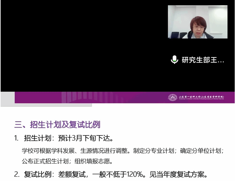 王汝霞详细介绍了国家和我校硕士研究生的招生录取原则、复试流程,重点说明了一志愿复试的备考过程、复习方法、录取原则和注意事项,强调了复试的重要性。她还介绍了调剂的相关问题,包括如何获取调剂信息、如何选择调剂学校专业、调剂的时间节点等,为同学们提供了诸多建设性意见。