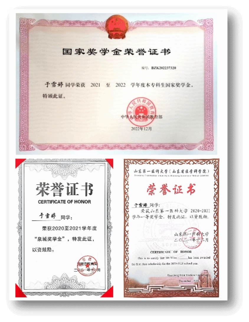 我怀抱梦想又脚踏实地,敢想敢为又善作善成。我始终将“学习”放于首位,高效、系统地学习专业理论,广泛涉猎各科知识,使得学业成绩和综合测评连续两年位列学院药学专业第一,荣获国家奖学金、泉城奖学金等荣誉。当考试周提前,项目获省赛资格,项目从院赛到校赛,一路过关斩将,我想奋力一搏,最终项目获奖,学业成绩保持稳定,所以光鲜的背后,是坦然接受,是笑对逆境,是高度自律。