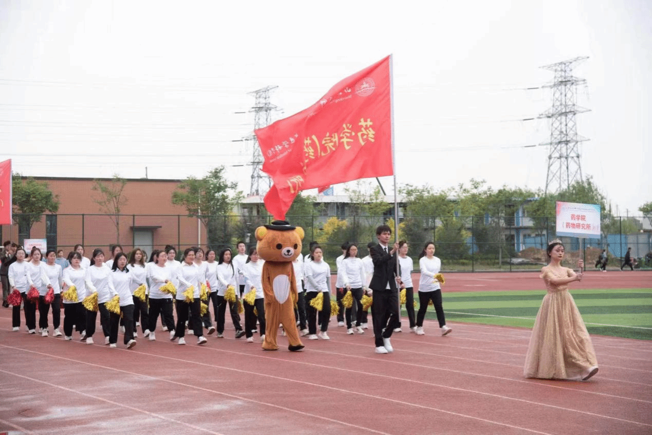 在激昂的乐曲声中,药学院(药物研究所)学生方队迈着整齐有力的步伐入场,“乘风破浪,气宇轩昂,药院学子,共创辉煌”的口号嘹亮无比、气势非凡,彰显了药院学子朝气蓬勃的精神面貌,展现着运动员们勇夺佳绩的坚定决心。