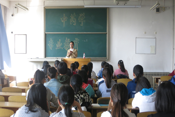 王德才分别从中国药学教育的历史和现状、泰山医学院药学院简介、药学的基本概念、药学本科专业的人才培养方案四个方面做了详细地介绍。王德才谈到了我国高等药学类专业教育的现状,他提到目前我国的化学类药物有99%是外国专利,因此中国研发属于自己的化学类药物迫在眉睫。他指出药学作为一门特色学科,需要培养一批高素质人才,为社会输送新鲜的力量,实现研制新药、促进市场的药物流通等重要目标。他还提到,分析化学、生物化学、有机化学是药学专业的核心基础课,药物化学、药理学、药物分析学、药剂学是药学院四大核心专业课,希望同学们充分利用时间、合理安排学习,熟练掌握专业课理论知识,并学会活学活用,将理论与实践结合起来,做一名真正的高素质人才,实现自身的人生价值。