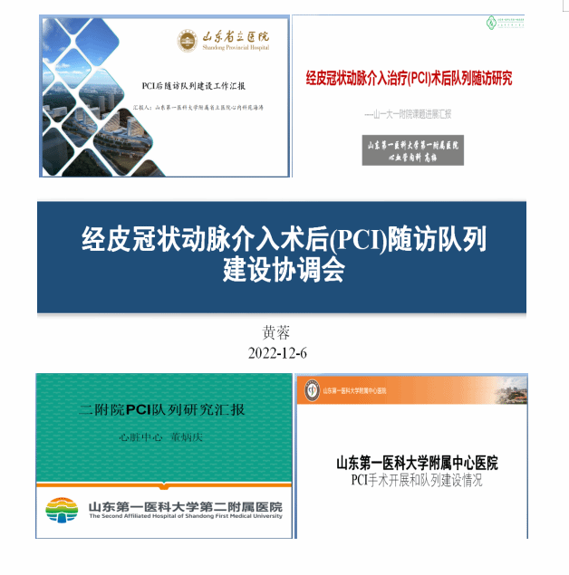围绕开展有组织科研-PCI队列研究工作进展情况,附属省立医院、第一附属医院、第二附属医院、附属中心医院等四家单位和科创中心黄蓉博士分别作了工作汇报。