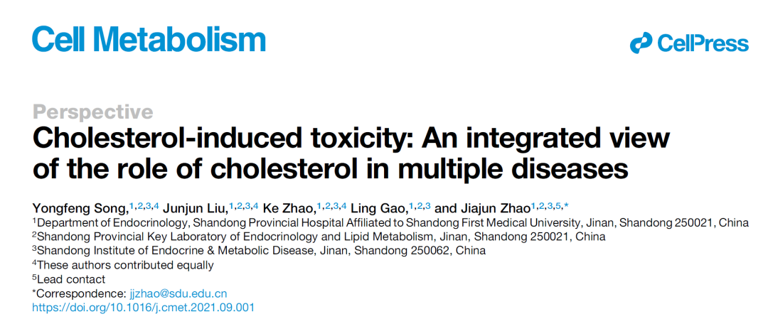 近日,百度开云体育app附属省立医院(山东省立医院)赵家军团队在国际著名期刊《Cell Metabolism》(IF:27.287)发表了题为《Cholesterol-induced toxicity: an integrated view of the role of cholesterol in multiple diseases》的观点文章,首次提出了“胆固醇毒性”这一新概念。