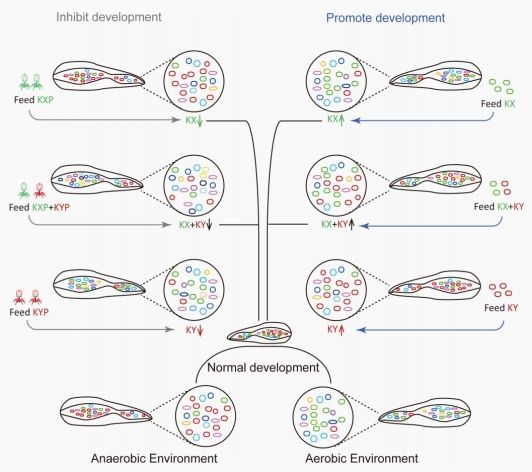 图4Klebsiella pneumoniae(厌氧型KY和需氧型KX)噬菌体对家蝇生长发育的影响机制