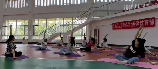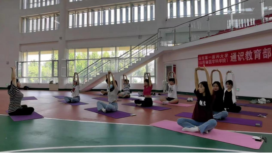 通识教育部体育教研室的孙黎曼老师带领同学们练习简易减压瑜伽,通过舒缓、温和的瑜伽体式把心理、身体和呼吸相结合,打开胸腔、强化背部、活动脊柱及臀腿… …让同学们在身体得到锻炼的同时,清空杂念,放松紧张的神经,让心理压力得到释放,从而缓解压力带来的身体不适。
