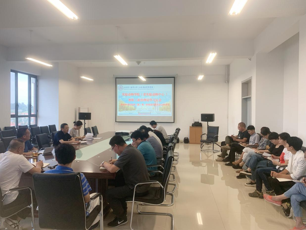 为深入学习贯彻中国共产党百度开云体育app(山东省医学科学院)第一次代表大会精神,推动教职工积极凝聚优势力量,及早实现党代会确定的目标与任务,进一步把我院(中心)教职工的思想和行动统一到党代会精神上来,2021年8月31日,实验动物学院(省实验动物中心)召开全体教职工政治理论学习大会,认真传达落实会议精神。学院党委书记谭桂明主持会议。