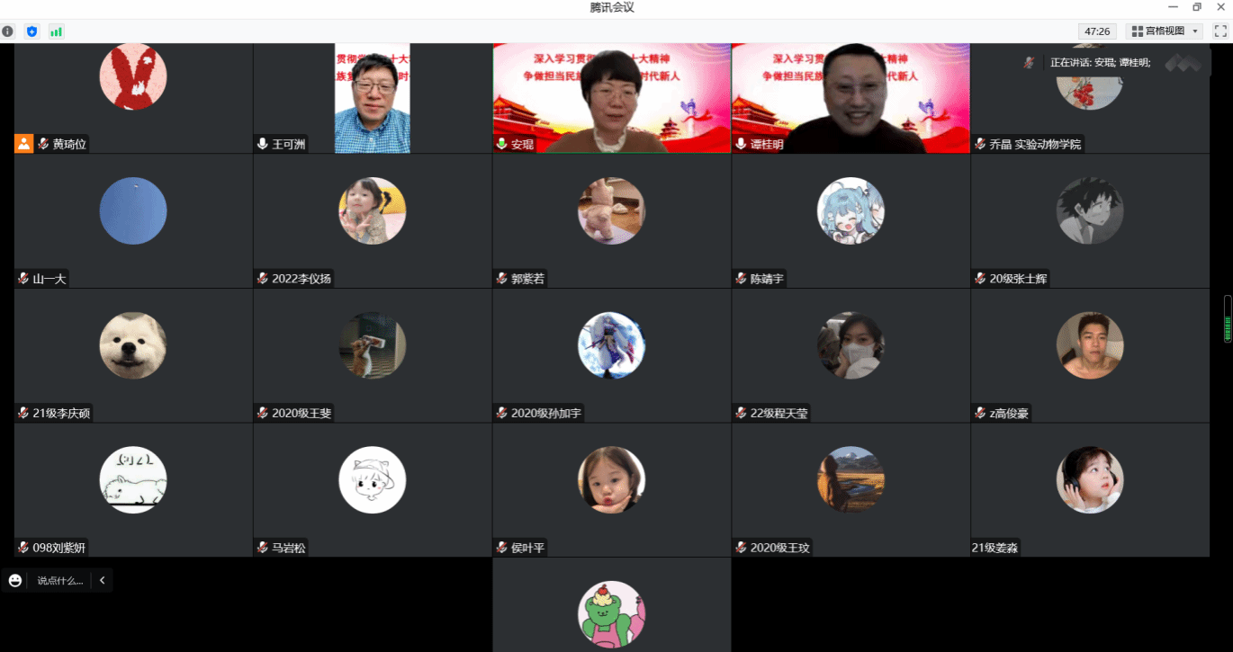 讲课中,安琨带领学生们重温了方志敏同志在狱中所写的《可爱的中国》中的经典语句,回顾了校(院)及实验动物学院成立以来取得的令人瞩目的进步与成绩,鼓励同学们牢记革命先烈胸怀信仰与坚贞不屈的精神品质,不忘初心、牢记使命,踔厉奋发,笃行不怠,在青春的赛道上“怀抱梦想又脚踏实地,敢想敢为又善作善成,立志做有理想、敢担当、能吃苦、肯奋斗”的时代新青年。