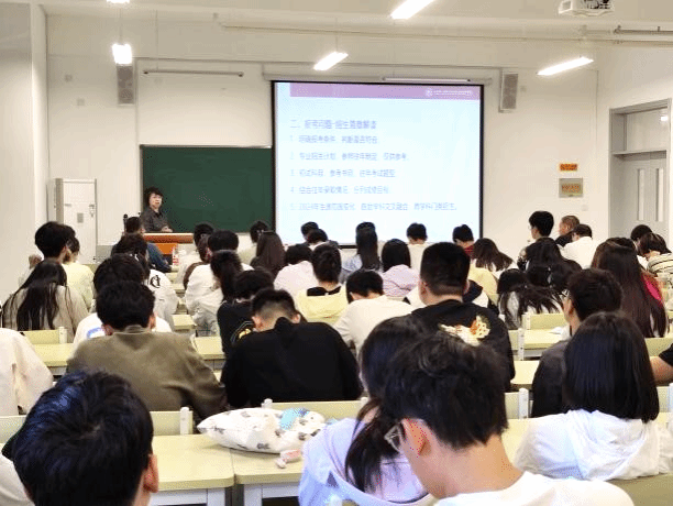 随后,王汝霞部长开展了考研专题讲座,对报考问题、招生计划及复试、录取原则等方面为同学们进行了详细的解读。讲座结束后,同学们反响热烈,积极提出在考验方面的困惑以及迷茫于对未来专业选择和就业相关性的问题,王部长对此一一解答。