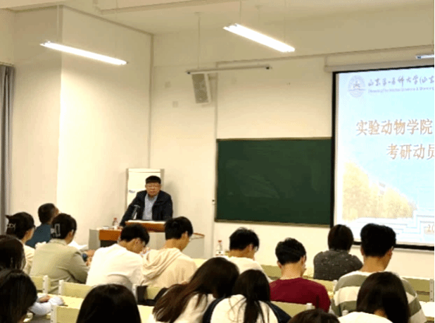 为进一步激发同学们的考研热情,加强同学们对考研的认识和了解,营造积极向上的学风。5月8日,实验动物学院(省实验动物中心)举办了考研动员及经验交流会。学院邀请研究生部副部长(副主任)王汝霞作专题讲座,20级考取研究生同学代表作考研经验交流。学院班子成员、部分教师,全体同学参加了本次会议。会议由副院长韩子强主持。