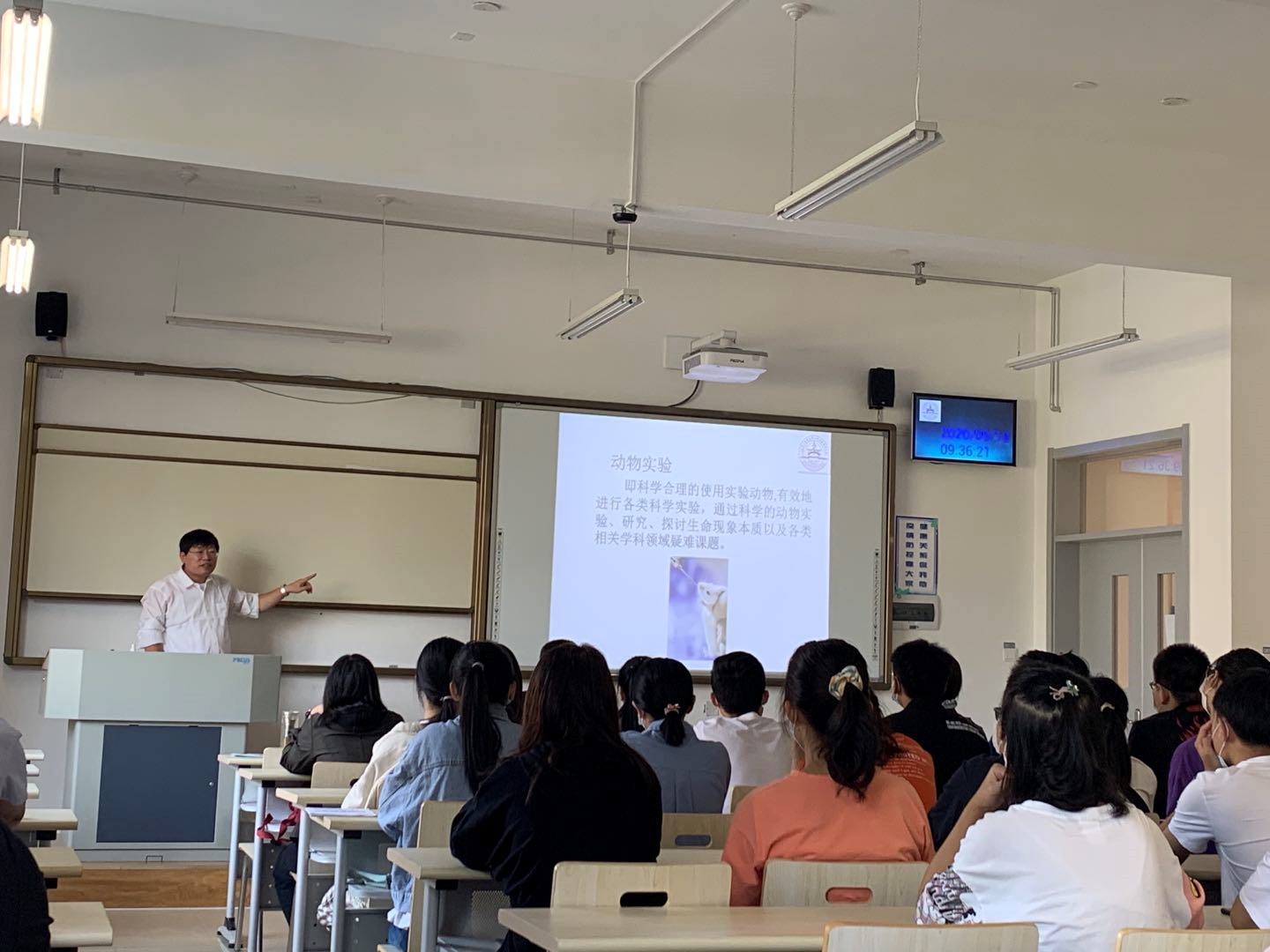 首先,学院(中心)常务副院长(常务副主任)王可洲给学生们上了一堂别开生面的专业认知课,在轻松幽默的氛围下对实验动物专业的基本情况、人才需求及应用领域做了详细的介绍,帮助同学们进一步“读懂”专业价值,打破潜在认知,更好“吃透”所学专业的课程体系、前沿需求及发展前景,培养学业志趣,增强作为实验动物人的使命感和责任感。