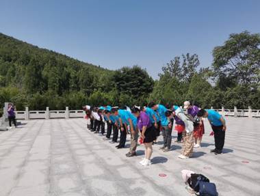 在大峰山革命纪念馆,大家全面地了解了战争年代、建设时期以及新时代长清党政军民传承红色基因的情况;在中共长清县委旧址,大家参观了大峰山独立营办公旧址、起居室、卫生室等场所,古朴的陈设仿佛让人们回到了那个战火纷飞的革命战争年代;在烈士陵园中,全员心怀崇敬,向为祖国和人民英勇献身的革命先烈鞠躬致敬。