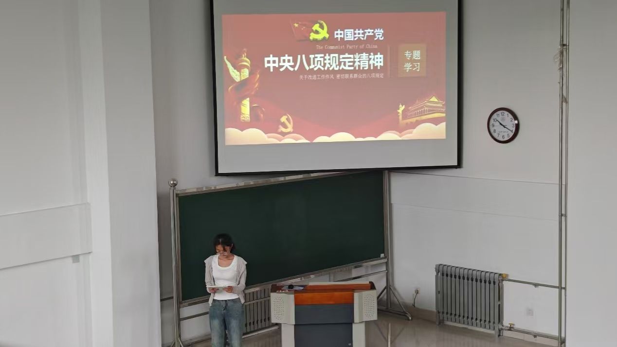 学生党员徐赫谈到,中央八项规定精神是长期坚持的重要准则。我们要从日常学习生活做起,严于律己,发挥党员先锋模范作用,带动同学们共同营造崇廉尚俭的校园文化。