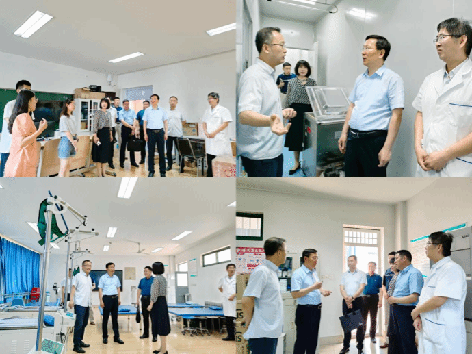 校(院)党委宣传部、医养战略研究院负责人陪同调研。学院班子成员,党支部书记,学(科)系、教研室主任及科级干部等参加活动。