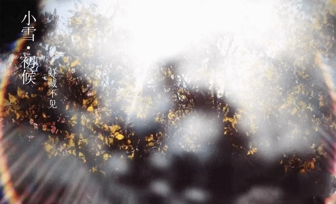 一候虹藏不见。虹即为今彩虹,虹为雨后天象。进入小雪节气,降水的形式逐渐从雨变为雪,因此下雪的天气里是不会出现彩虹的。