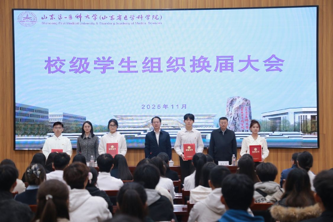 11月5日,2025年校级学生组织换届大会在泰安校区举行。校(院)党委委员、副校(院)长贾海宁出席会议并讲话。