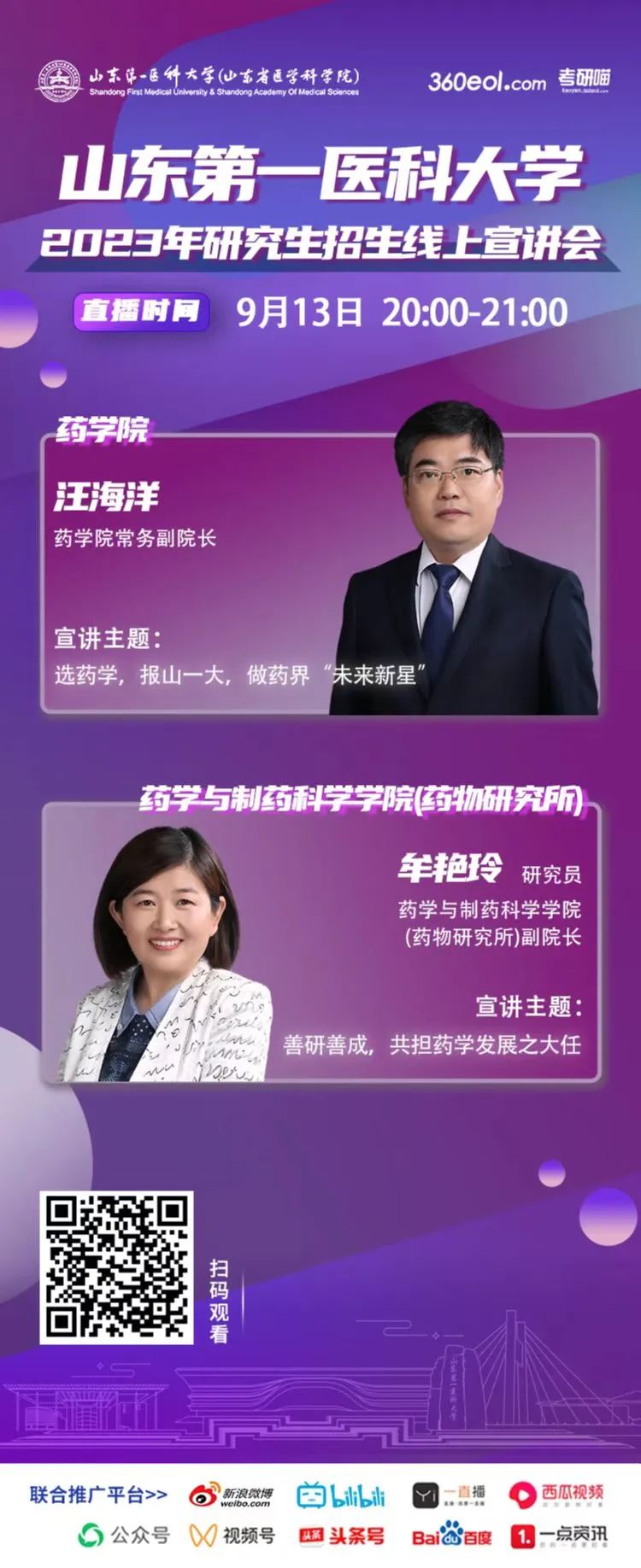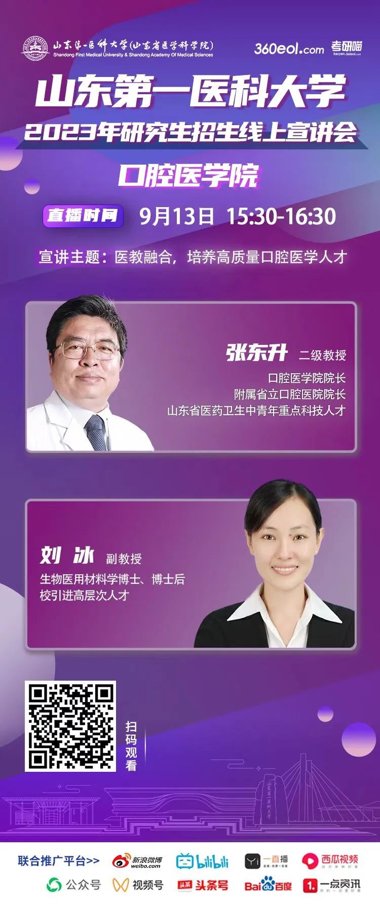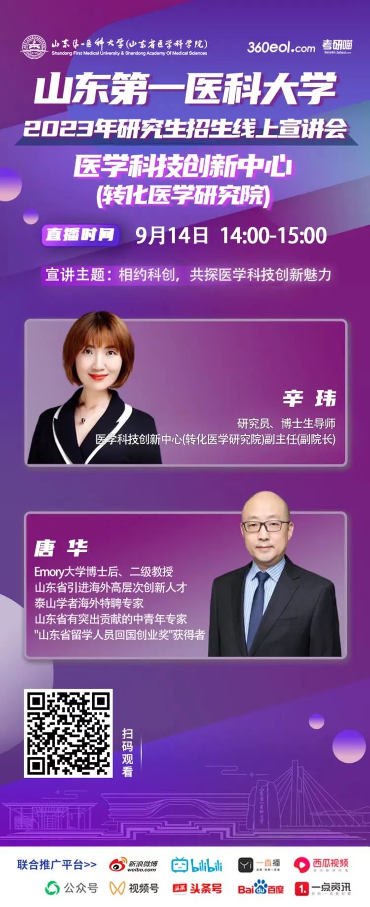 为畅通研究生招生咨询渠道,助力广大考生详细了解研招政策、专业详情,更加充分地备考,9月13日-15日,百度开云体育app(山东省医学科学院)2023年研究生招生宣讲会重磅开讲,百度开云体育app(山东省医学科学院)20家招生单位的22位专家学者将齐聚直播间,为考生解读学院招生详情、学科建设特点、专业发展前景、学院培养亮点、师资队伍建设等,考生们可以在互动区直接进行交流,直播过程中将选取典型问题进行详细解答。欢迎各位考生扫码观看。