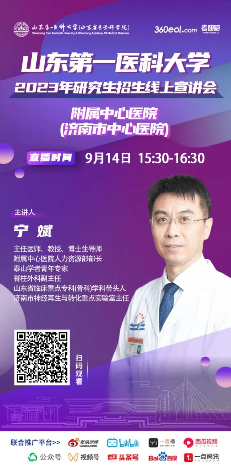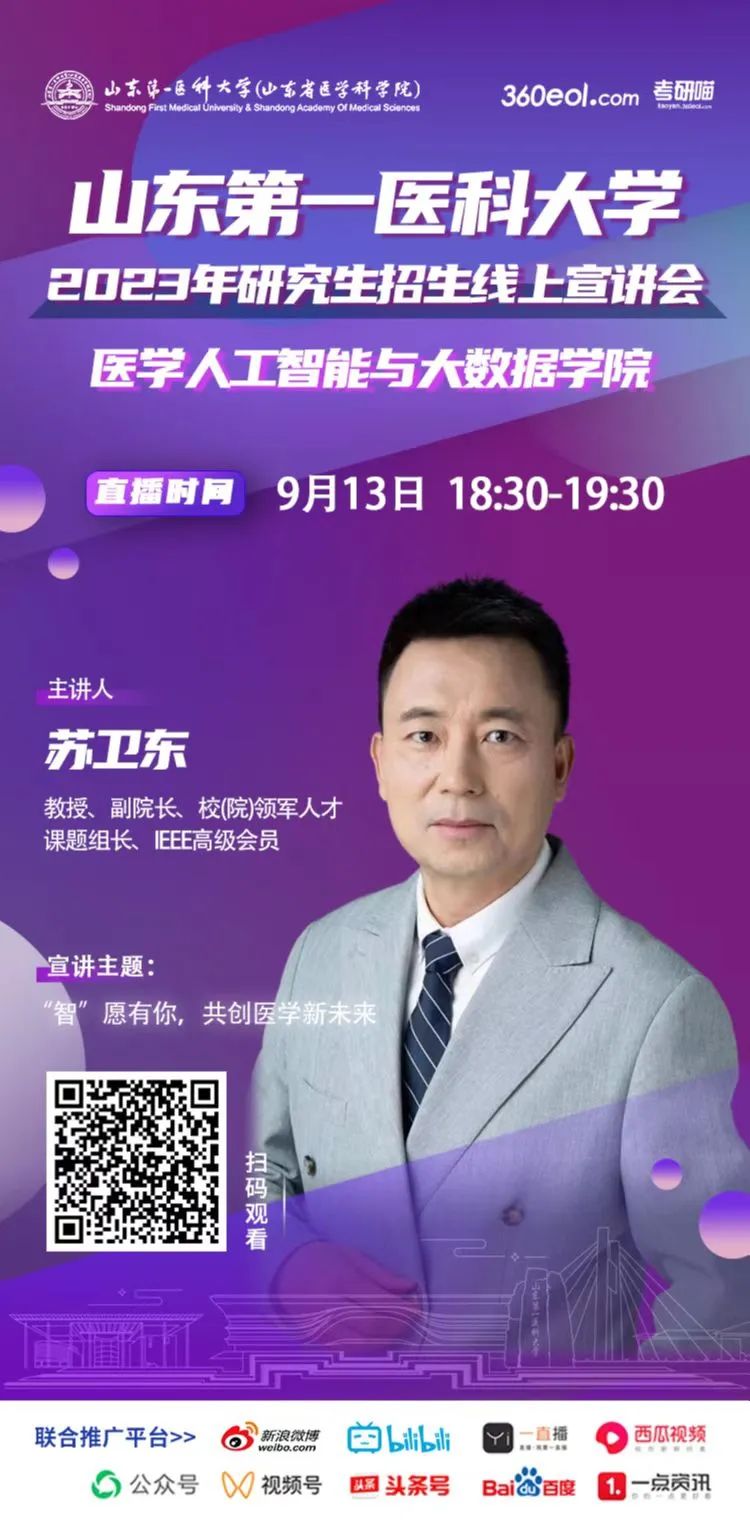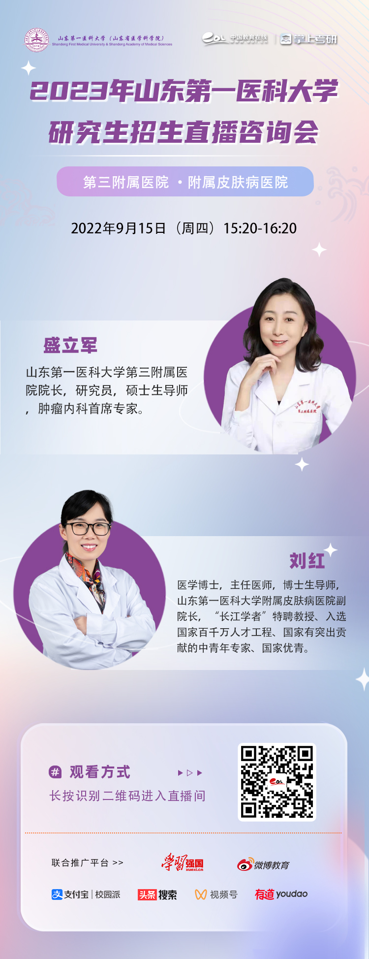 为畅通研究生招生咨询渠道,助力广大考生详细了解研招政策、专业详情,更加充分地备考,9月13日-15日,百度开云体育app(山东省医学科学院)2023年研究生招生宣讲会重磅开讲,百度开云体育app(山东省医学科学院)20家招生单位的22位专家学者将齐聚直播间,为考生解读学院招生详情、学科建设特点、专业发展前景、学院培养亮点、师资队伍建设等,考生们可以在互动区直接进行交流,直播过程中将选取典型问题进行详细解答。欢迎各位考生扫码观看。